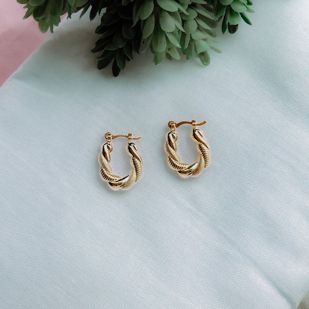 Brinco Ear Hook 2 fios trabalhado Banho Ouro 18K
