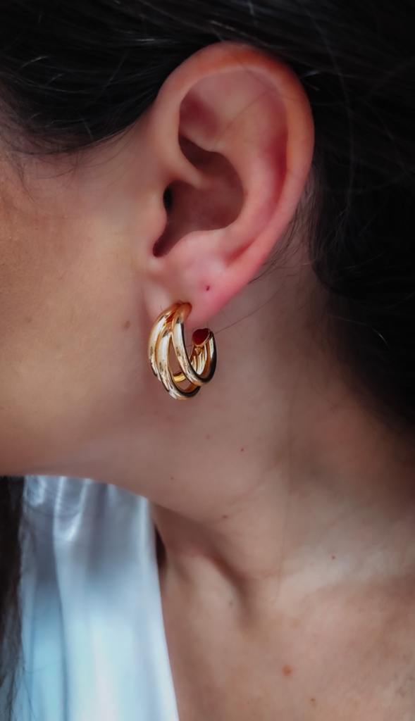 Brinco Ear Hook 2 fios trabalhado Banho Ouro 18K
